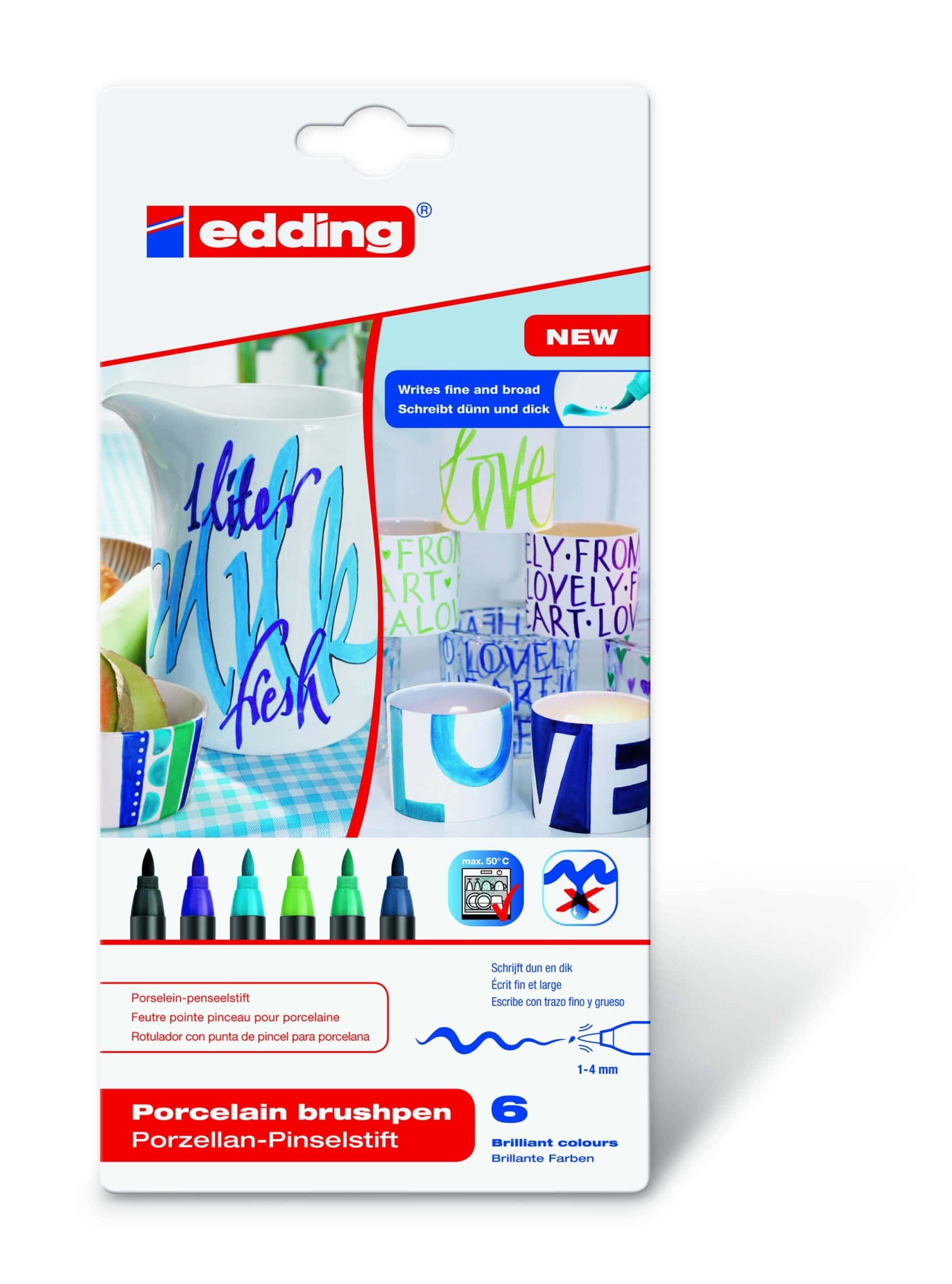 Porcelanska četkica Edding je idealno rešenje za etiketiranje, kreativno ukrašavanje i šareno farbanje keramike i porcelana.