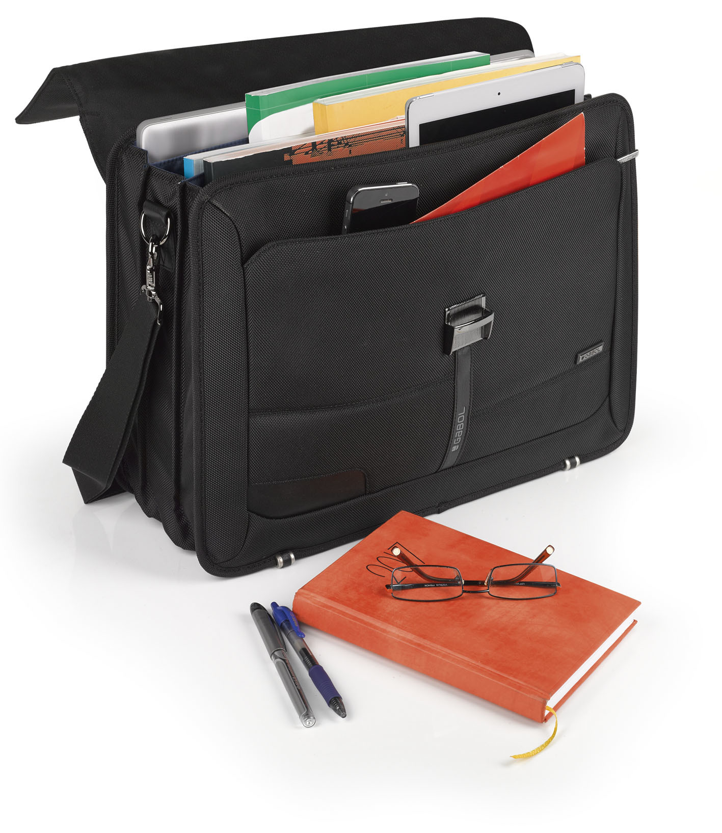 Poslovna tekstilna torba sa detaljima od veštačke kože, pre svega namenjena nošenju velikog broja dokumenata.