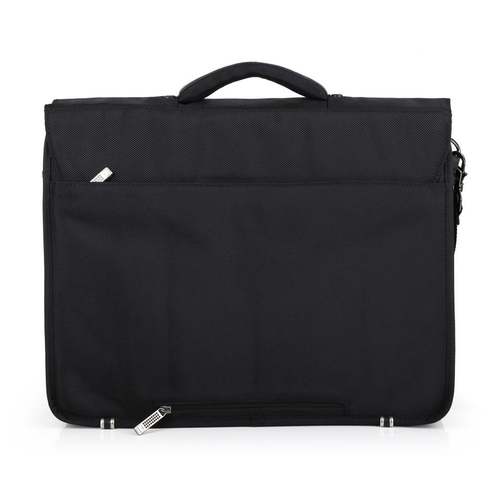 Sa zadnje strane ranca je široka traka koja omogućava lako kačenje teleskop ručku kofera. Glavna i najveća pregrada se otvara sa gornje strane, i sadrži dodatni zaštitu za računar.