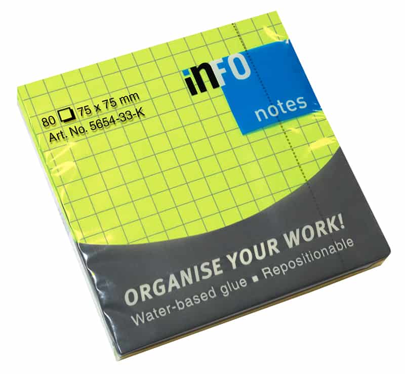 Samolepljivi blokčići 75×75 kvadratići blistave boje zelena Info Notes