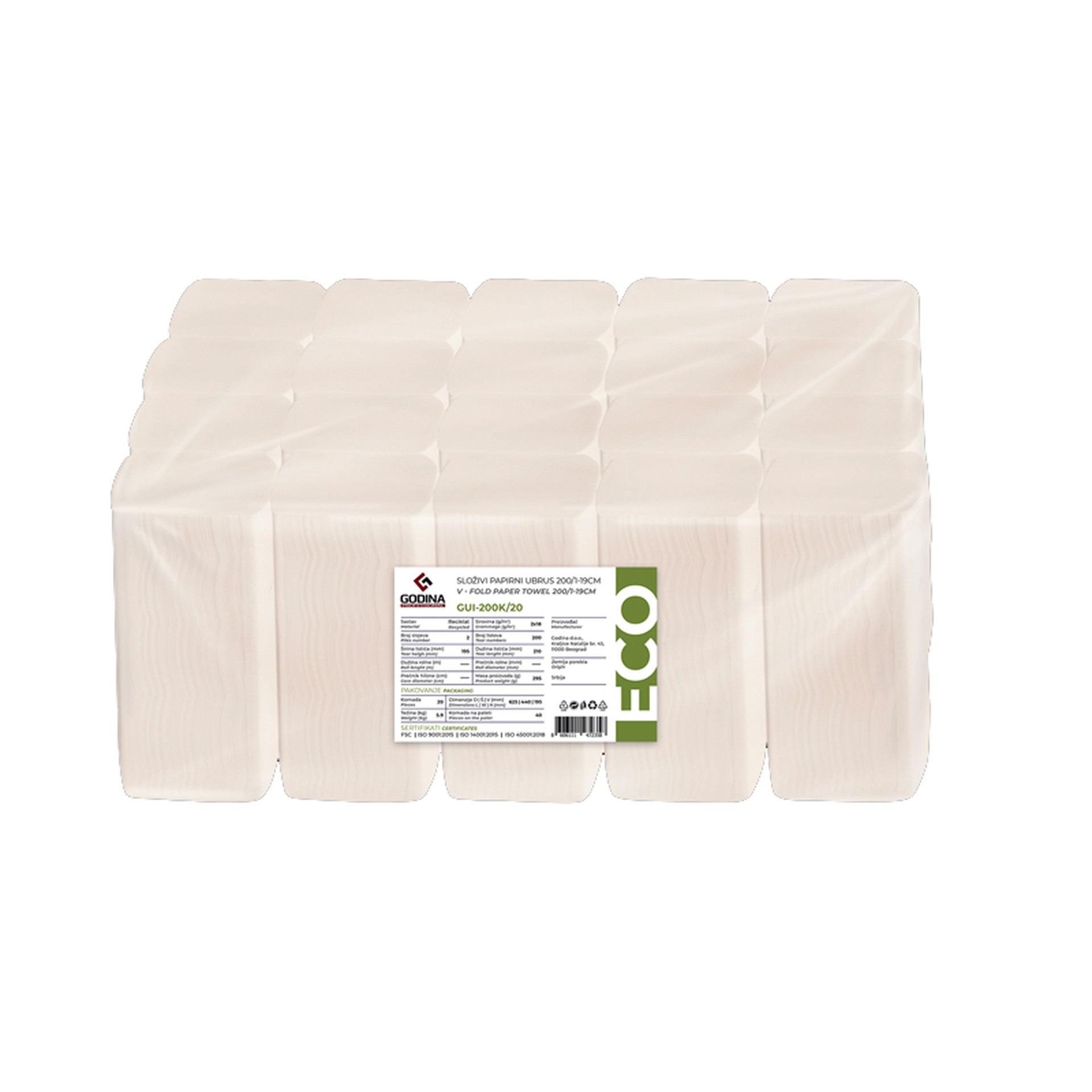 Složivi papirni ubrus dvoslojni, Eko – celuloza, 200×20 klip – BEO