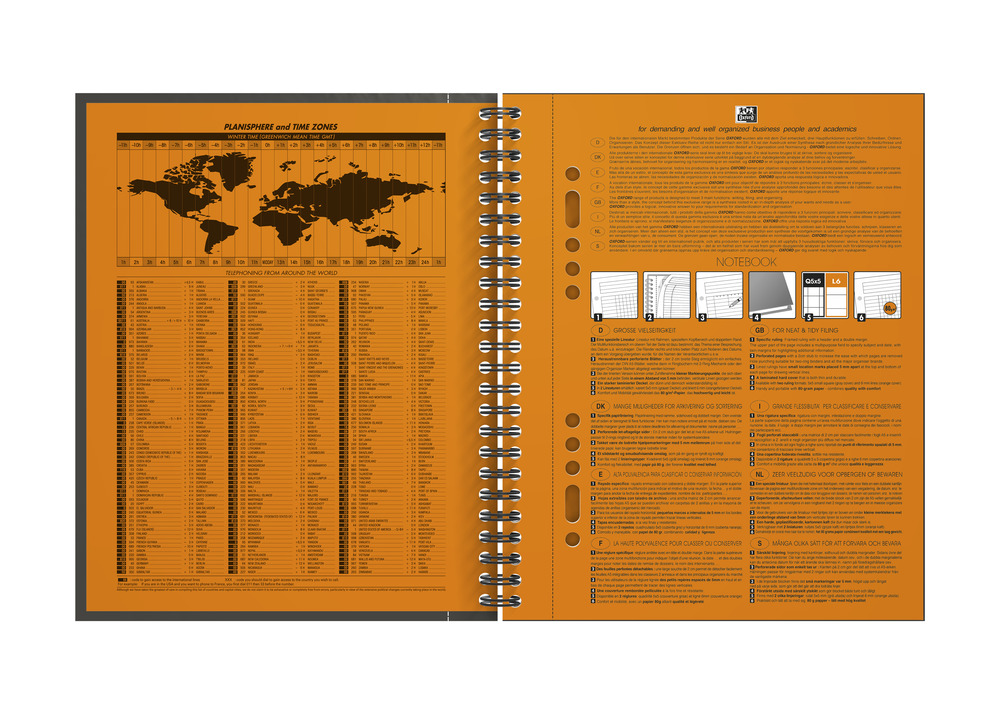 Laminirana, tvrdi povez, izdržljiva – u grafitno sivoj boji, pruža odličnu zaštitu za beleške i savršena je za vođenje beleški dok stojite. Sadrži informacije o međunarodnim pozivnim brojevima i vremenskim zonama, kao i savete na deset jezika.
