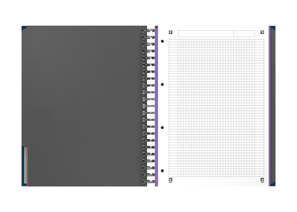 Sveska je podeljena na 4 različito obojene sekcije i ima tri polipropilenska obeleživača strana, kao i jedan dodatni separator, koji vam omogućavaju da odvojite beleške iz vaših različitih projekata.